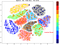 - The faint color in the background of each cluster is the true label. This is created using TSNE of all 60k training images (labels used)