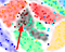 - The small circles inside each cluster are from the 1000 training images that were used in the supervised training phase.